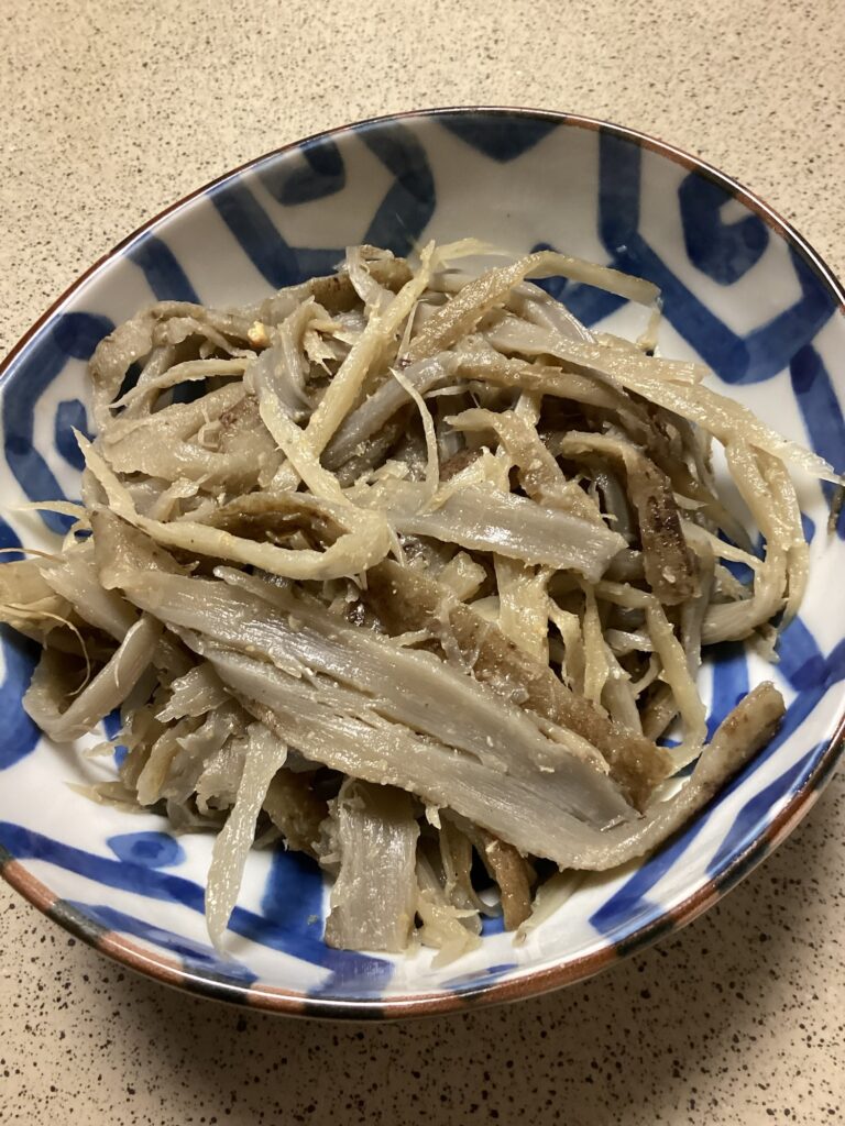 4️⃣ごぼうを手で裂きます